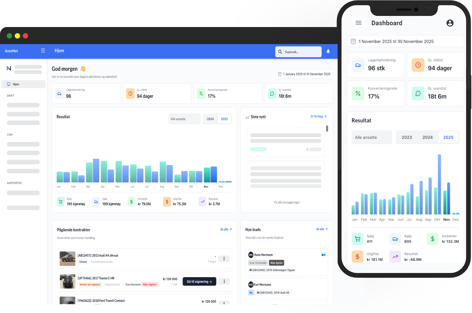 AutoNet skal være førstevalget for alle som omsetter kjøretøy. En komplett, brukervennlig løsning med integrasjoner til dine partnere.